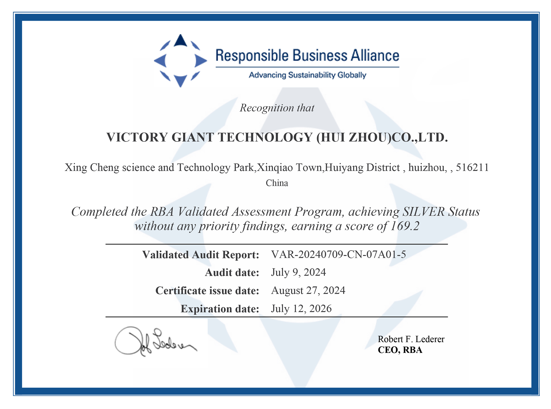 RBA VAP監(jiān)察証明書