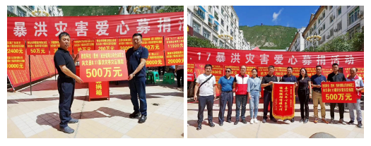 8月31日,甘肅文縣舉行8.17暴洪災害愛心募捐活動。活動上,金年會科技/勝華電子全體職工、何總、陳董捐助的500萬元善款已送達文縣災區。